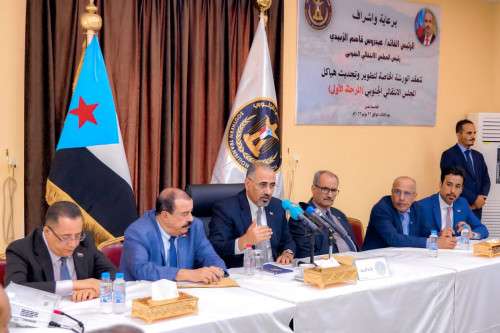 افتتح الرئيس القائد عيدروس قاسم الزُبيدي، رئيس المجلس الانتقالي الجنوبي، يوم الثلاثاء 26 يوليو، المرحلة الأولى للورشة الخاصة بتطوير وتحديث هياكل المجلس.