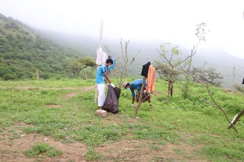 وجرى خلال المبادرة توزيع الأكياس على الزوار المتواجدين في المحمية لجمع المخلفات، وتعليق الملصقات التي تحمل صور وعبارات إرشادية حول أهمية البيئة والحفاظ على النظافة.