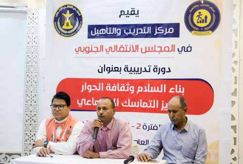 دشن مركز التدريب والتأهيل في المجلس الانتقالي الجنوبي يوم الثلاثاء 2 أغسطس ، في العاصمة عدن، دورة تدريبية حول " بناء السلام وثقافة الحوار وتعزيز التماسك الاجتماعي".