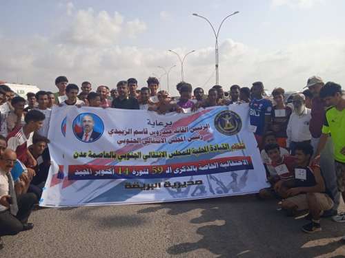 نظمت القيادة المحلية للمجلس الانتقالي الجنوبي في مديرية البريقة بالعاصمة عدن، ماراثون رياضي بمناسبة الذكرى الـ 59 لثورة الرابع عشر من اكتوبر المجيدة، برعاية كريمة من الرئيس القائد عيدروس بن قاسم الزُبيدي.