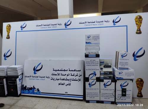 Today, Wednesday, November 23, Al-Wahda Cement Company gifted Khanfar district in Abyan governorate with large screens, beIN sports devices and projectors with large headphones, as a community contribution as a gift for the youth in the district to enjoy watching the World Cup matches that are being held in the State of Qatar.