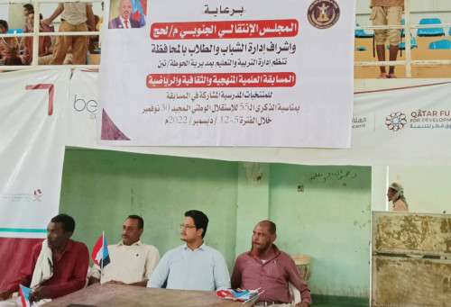 نظمت إدارة الشباب والطلاب بالهيئة التنفيذية للمجلس الانتقالي الجنوبي في محافظة لحج، يوم الثلاثاء، فعاليات رياضية لطلاب مدارس التعليم الثانوي بمديريتي الحوطة وتبن، ضمن الأنشطة المنفذة بمناسبة عيد الاستقلال 30 من نوفمبر.