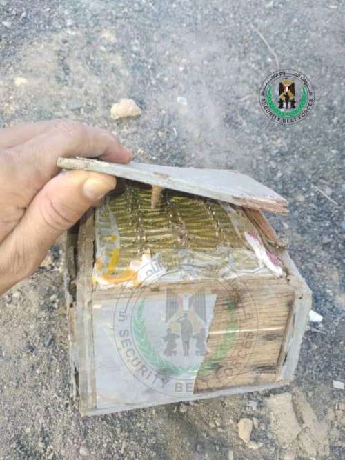 عثرت قوات الحزام الأمني ساحل محافظة أبين على عبوات ناسفة مرمية بأحد أودية الرملة والجبلية غرب مدينة شقرة بمحافظة أبين.