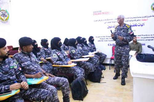 وكانت الورشة قد تضمنت عدد من المحاضرات التوعوية قدمها العميد حسن يحيى والأستاذ صقر منقوش ناقشت محاور الورشة كيفية حماية المدنيين في ظل الصراع وتخفيف الضرر عنهم.
