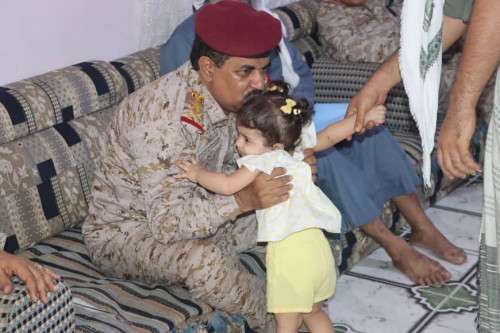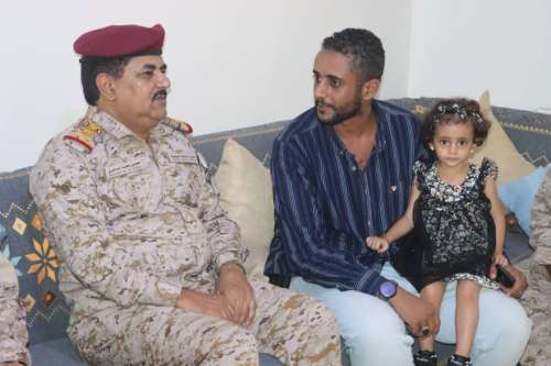 في ذات السياق زار وزير الدفاع أسرة الشهيد اللواء الركن أحمد سيف المحرمي نائب رئيس هيئة الاركان العامة السابق مشيدا بادواره القيادية والنضالية وتنقله في اكثر من جبهة لدحر مليشيا الحوثي الارهابية حتى استشهاده في المخا في فبراير 2017.