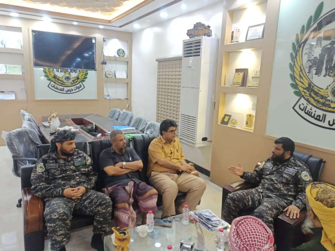 وأبدى قائد قوات حرس المنشآت الحكومية استعداده لتقديم الدعم والمساعدة لضمان استمرار عمل مؤسسة مطابع الكتاب المدرسي خصوصا في الجانب الأمني.