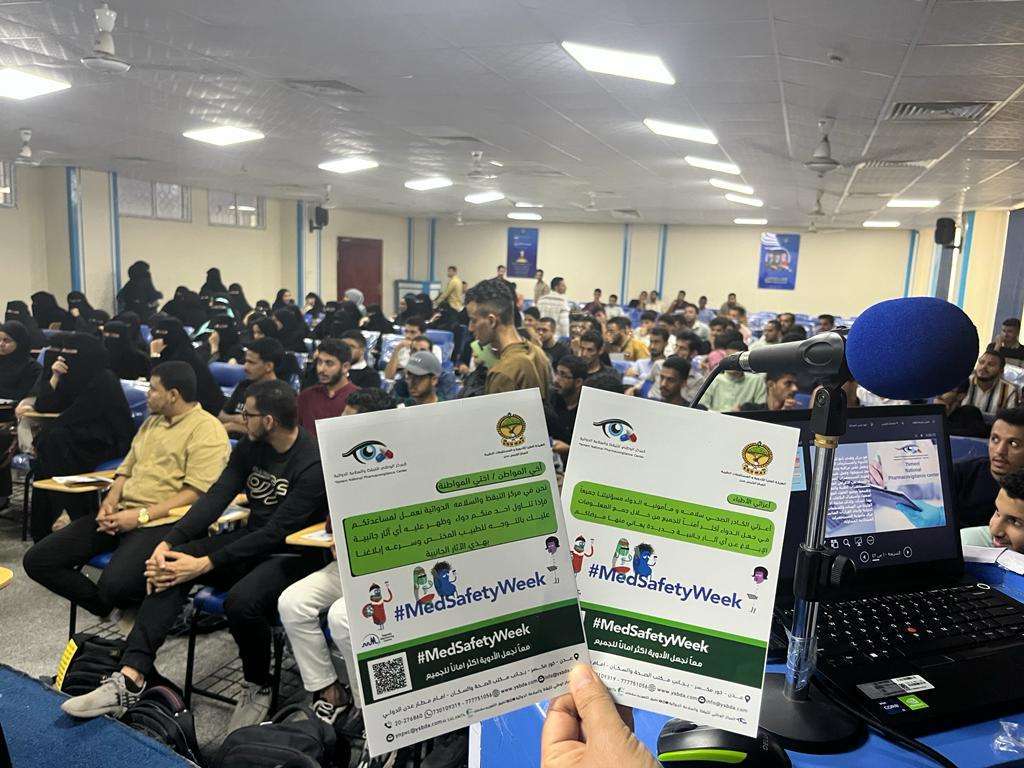 اسبوع التيقظ والسلامة الدوائية كانت محطته النهائية اليوم بجامعة العلوم والتكنولوجيا مستهدفا كادراتها بالمعارف والارشادات للابلاغ عن أي آثار جانبية الأدوية والمستلزمات الطبية والمواد الكيميائية وقدمت شروحات لهم في كيفية التعامل مع استمارات الابلاغ.