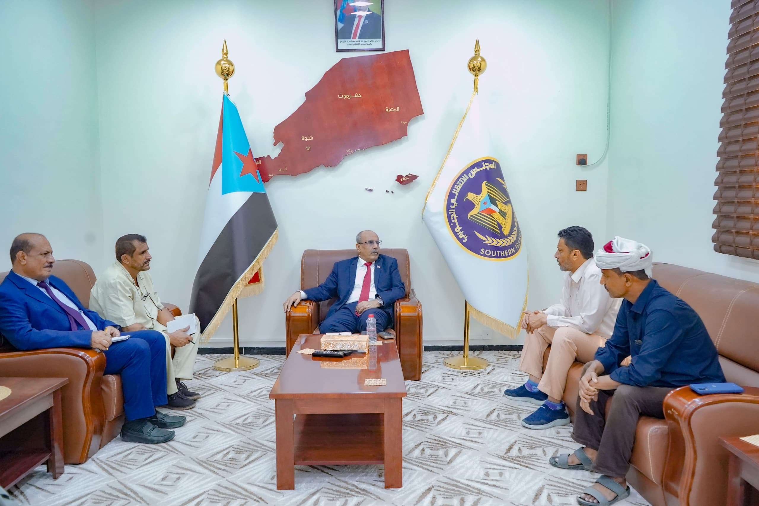 Today, Wednesday, Mr. Ali Al-Kathiri, Acting President of the Transitional Council and Chairman of the National Assembly, was briefed on the progress of the work of the Executive Body of the Local Leadership of the Transitional Council in Abyan Governorate, and the overall conditions and developments in the governorate.
