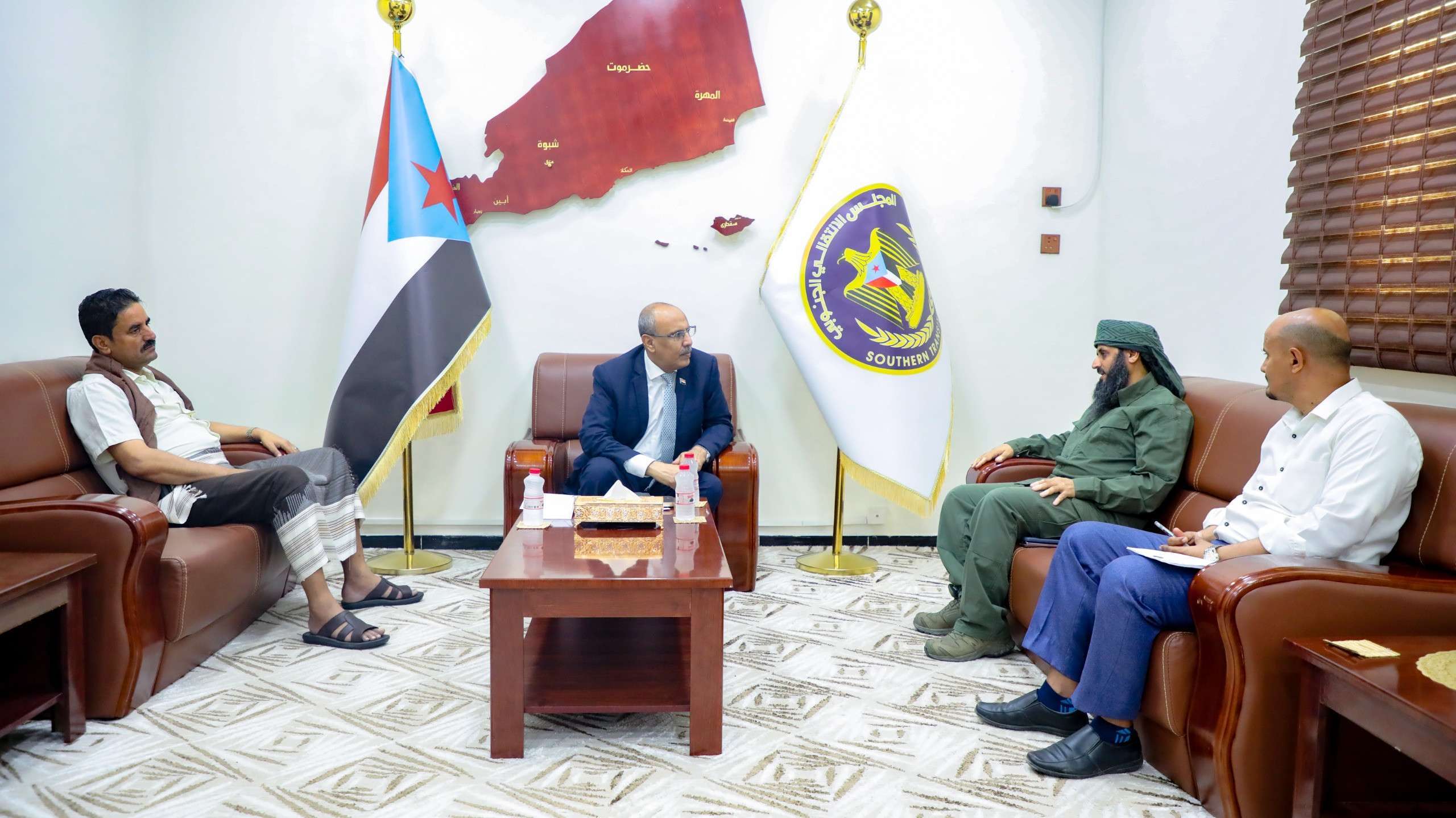 This came during his meeting with Brigadier General Mohsen Al-Wali, Commander of the Security Belt Forces, today, Monday, in his office in the capital, Aden, in the presence of Brigadier General Ali Al-Jabwani, a member of the Transitional Council's Presidium, where he was briefed on the security situation in the capital, Aden, and the rest of the governorates in which the Security Belt Forces are present, and the role of the Security Belt in combating terrorism, drugs,crime in all its forms, tracking those out of order and the law, and his efforts to control security points at the entrances to cities and combat smuggling, and to secure and protect government facilities and institutions, and his efforts to raise the level of performance of individuals and leaders and enhance their capabilities.