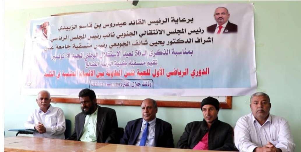 دشن رئيس الهيئة التنفيذية للمجلس الانتقالي الجنوبي بمحافظة الضالع العميد عبدالله مهدي سعيد، بمعية رئيس منسقية المجلس الانتقالي بجامعة عدن الدكتور يحيى شائف، صباح اليوم الثلاثاء منافسات بطولة تنس الطاولة لأقسام كلية التربية التي تنظمها منسقية المجلس الانتقالي بالكلية. وشهد حضور افتتاح البطولة عدد من الشخصيات الأكاديمية منهم رئيس منسقية كلية التربية الضالع الدكتور نبيل صالح صوحل، ونائبا عميد كلية التربية الدكتور عبدالسلام يحيى والدكتور مصطفى الحاج، إلى جانب مشرف المجلس التنسيقي لمنظمات المجتمع المدني بالمحافظة الأستاذ فضل هادي، والدكتور عبدالله الوبر رئيس اتحاد أدباء وكتاب الجنوب، وعدد من أعضاء الهيئة التدريسية والتدريسية المساعدة بالكلية. ويأتي تنظيم المنسقية للدوري الرياضي الاول في لعبة تنس الطاولة بين الأقسام العلمية على مستوى كلية التربية الضالع تزامناً مع حلول الذكرى السادسة والخمسين لعيد الاستقلال الوطني الجنوبي الأول الثلاثين من نوفمبر، وضمن الأنشطة الدورية التي تنفذها المنسقية برعاية الرئيس القائد عيدروس الزبيدي. وحسب إدارة المنسقية فأن إقامة مثل هذه الفعاليات الرياضية تهدف لخلق أجواء من التنافس الرياضي والتحدي بين طلاب الاقسام المختلفة تسودها الإلفة والمحبة والروح الرياضية.