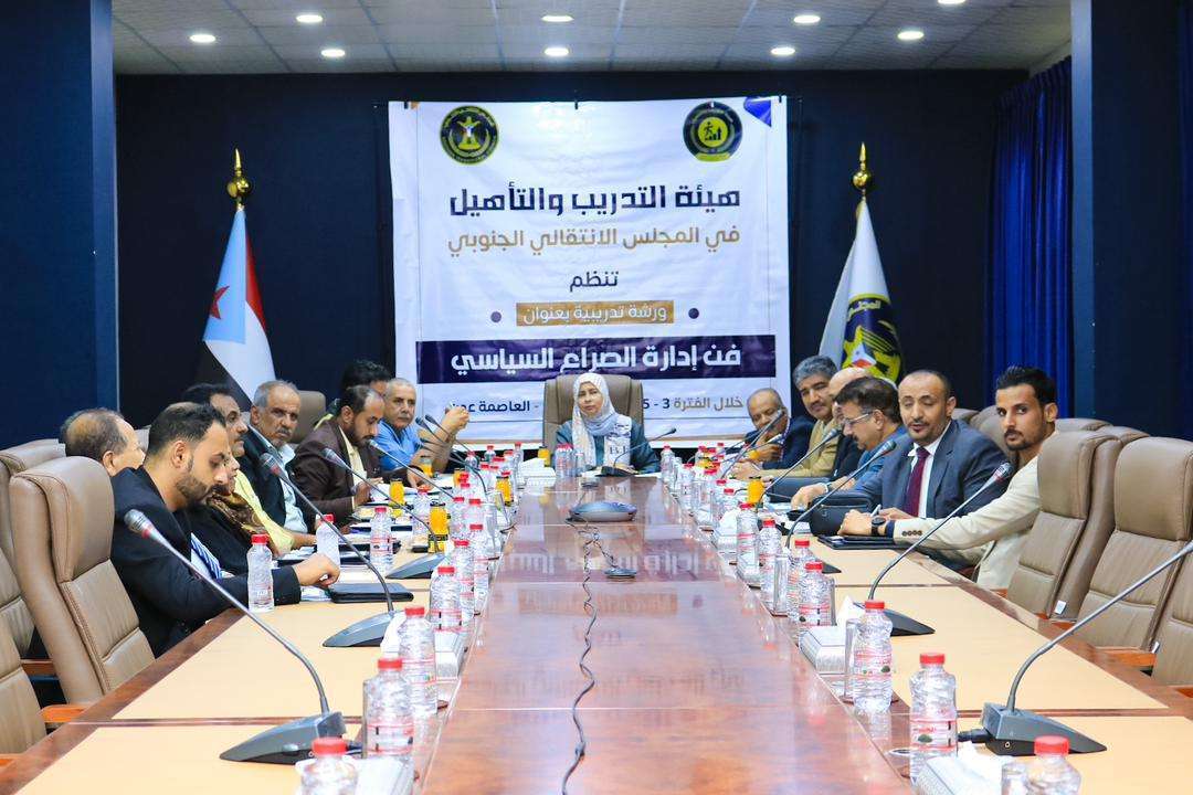نظمت هيئة التدريب والتأهيل المساعدة لهيئة رئاسة المجلس الانتقالي الجنوبي، اليوم الاحد، في العاصمة عدن، دورة تدريبية لأعضاء هيئة الرئاسة ورؤساء الهيئات المساعدة بعنوان "فن إدارة الصراع السياسي".