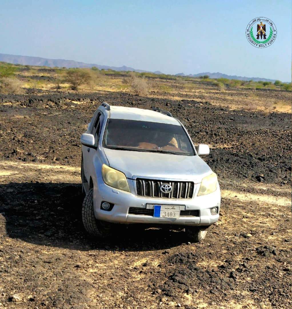 استعادة قوات الحزام الأمني في محافظة أبين، سيارة بعد اختطافها من الخط الدولي العام من قبل مجموعة مسلحة خارجة عن النظام والقانون.