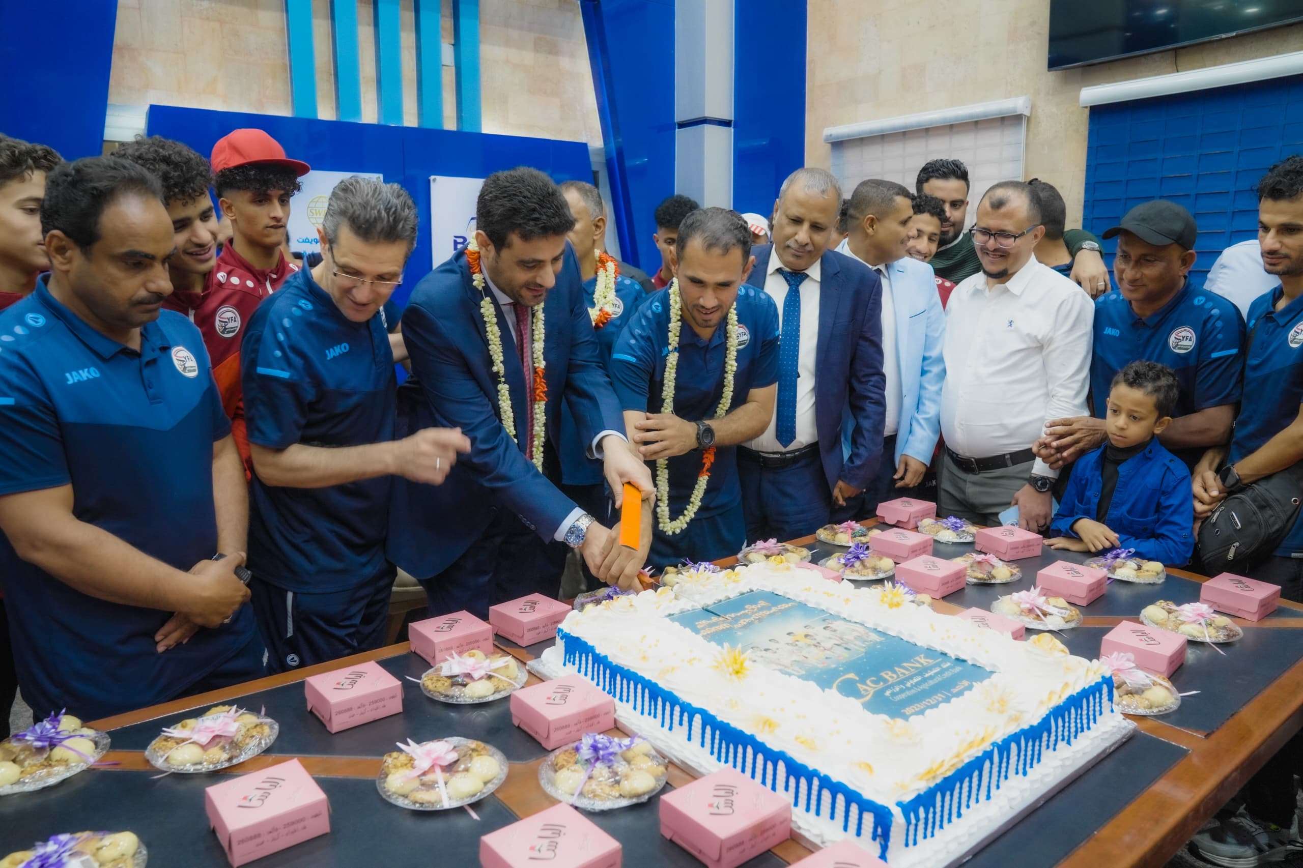 واستقبل الأستاذ "حاشد الهمداني" القائم بإعمال رئيس مجلس الإدارة، الرئيس التنفيذي للبنك، بعثة المنتخب، في مبنى الإدارة العامة للبنك بعدن، ورحب بوجودهم في ضيافة مؤسستهم الحكومية "كاك بنك" التي يتشرف باسمه ونيابة عن قيادتها وكل منتسبيها، الاحتفاء بهم وتقديم التهاني والتبريكات لهم بمناسبة تتويجهم ببطولة اتحاد غرب آسيا، للمرة الثانية وإدخال الفرحة والسرور إلى قلوب الملايين من الشعب اليمني في مختلف أرجاء الوطن. وتقدم "الهمداني" بمقترح لانشاء صندوق يكون نواه لدعم الرياضة في البلد.