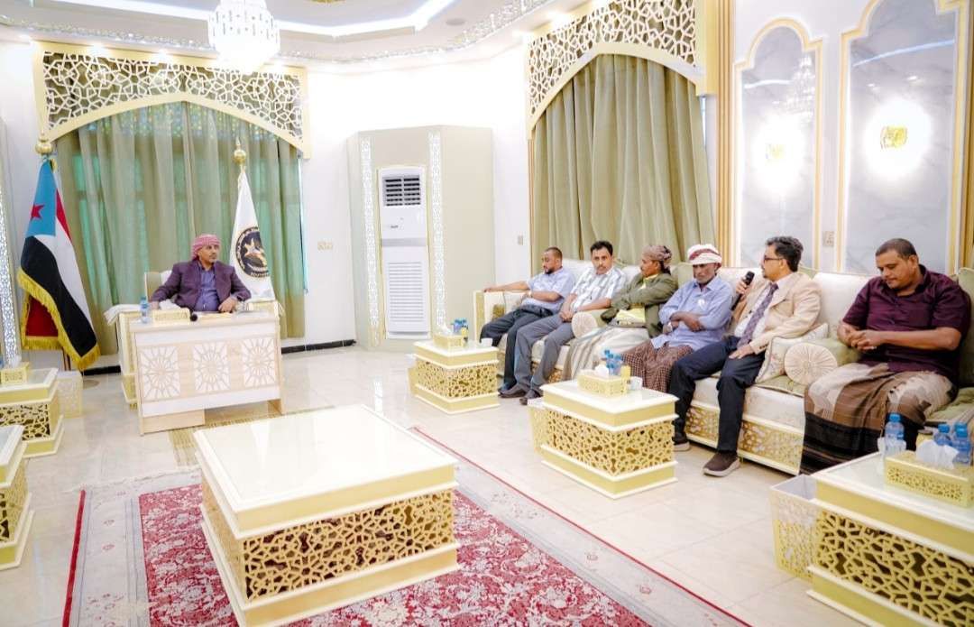 استقبل الرئيس القائد عيدروس قاسم الزُبيدي رئيس المجلس الانتقالي الجنوبي، نائب رئيس مجلس القيادة الرئاسي، يوم الأربعاء، وفد محافظة سقطرى المُشارك في الاجتماع التأسيسي لمجلس العموم، من أعضاء الجمعية الوطنية، والمجلس الاستشاري.