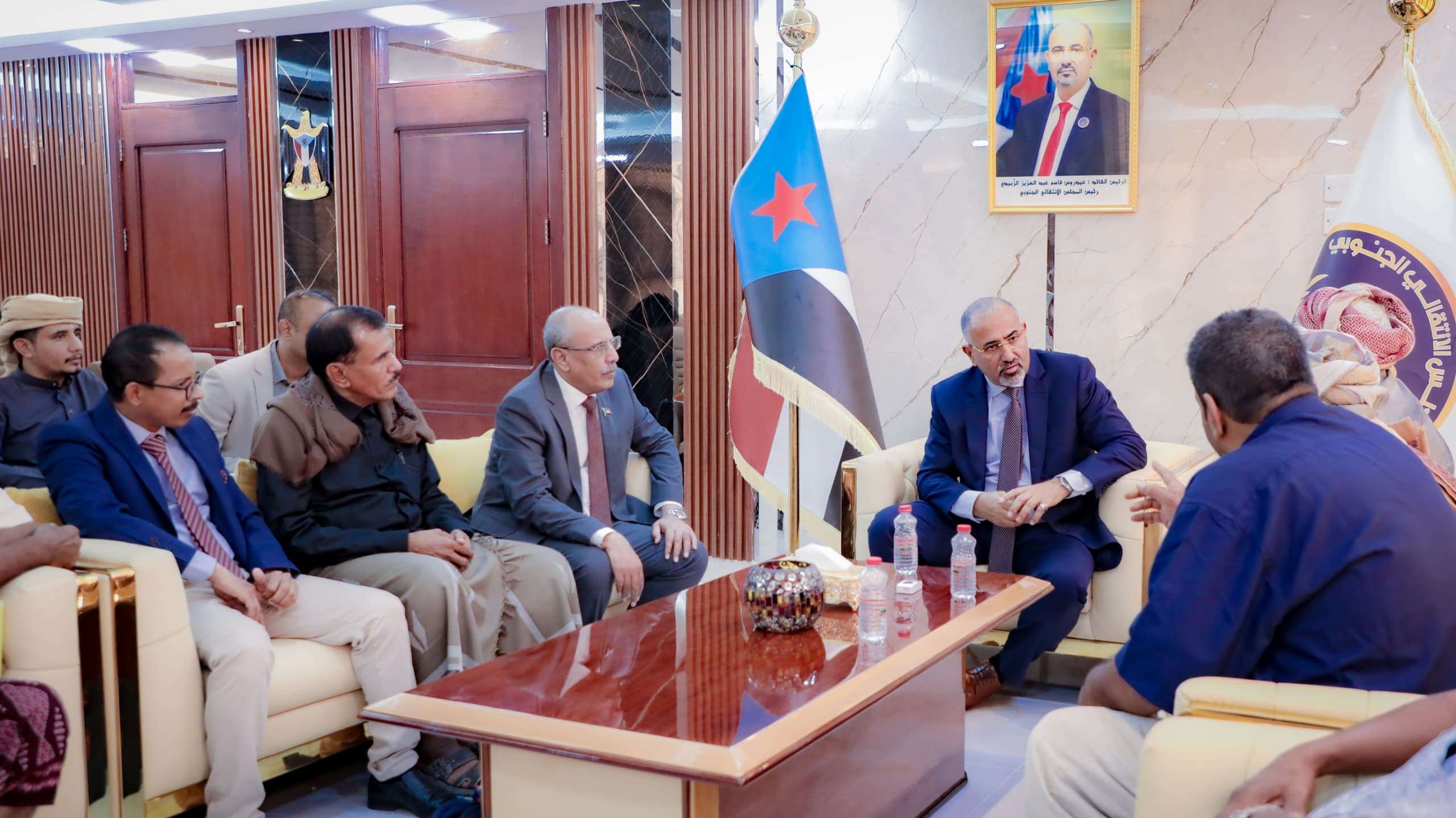 استقبل الرئيس القائد عيدروس قاسم الزُبيدي رئيس المجلس الانتقالي الجنوبي، نائب رئيس مجلس القيادة الرئاسي، يوم الأحد وفدا من مقادمة قبائل الحموم في محافظة حضرموت برئاسة الشيخ سالمين بن مجنح الحمومي شيخ قبائل الحموم.