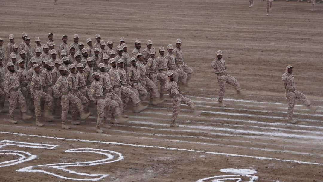 وفي حفل التخرج، قدّم المتخرجون عرضًا عسكريًّا مهيبًا، استعرضوا فيه أهم المهارات التي اكتسبوها في دورة التأهيل العسكري، وأظهروا في العرض انتظامًا مميزًا في خطواتهم وجاهزيتهم، ومعنويات عالية يتمتعون بها.