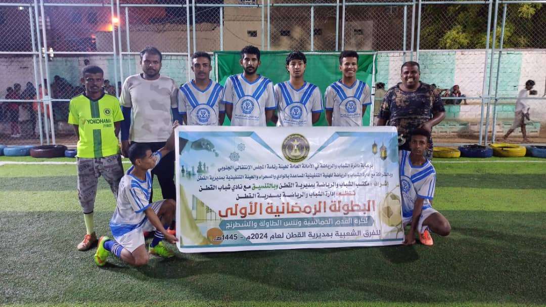 أنطلقت مساء يوم الثلاثاء السادس عشر من رمضان 1445هـ البطولة الرمضانية الأولى في الالعاب الرياضية (كرة القدم الخماسية' تنس الطاولة' الشطرنج) للفرق الشعبية بمديرية القطن محافظة حضرموت التي تأتي برعاية دائرة الشباب والرياضة في الامانة العامة لهيئه رئاسة المجلس الإنتقالي الجنوبي بالشراكة مع ادارة الشباب والرياضة بالهيئة التنفيذية المساعدة بالوادي والصحراء والهيئة التنفيذية بمديرية القطن وإشراف مكتب الشباب والرياضة بمديرية القطن بالتنسيق مع نادي شباب القطن وتنظمها ادارة الشباب والرياضة بتنفيذية القطن'