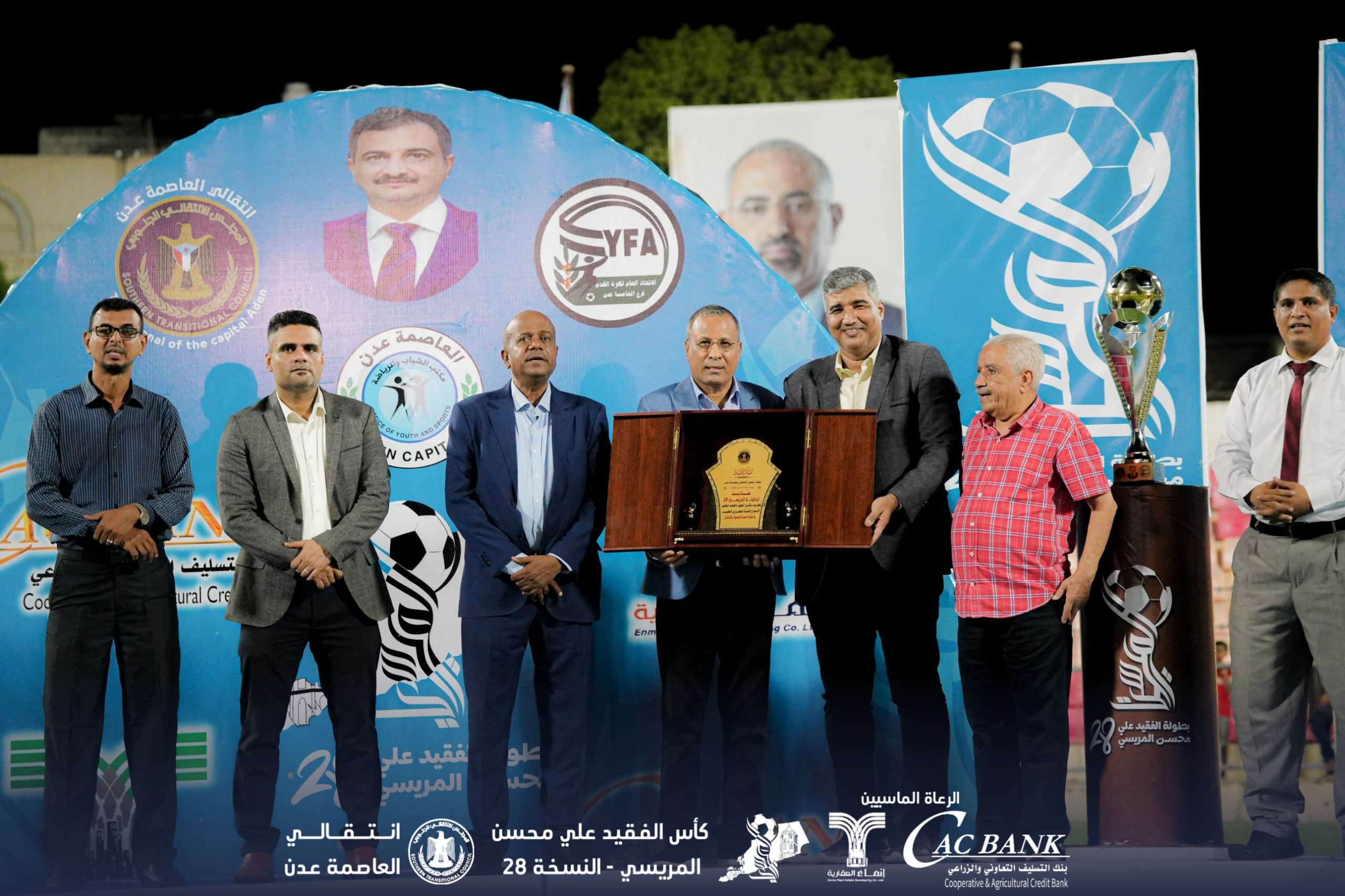 كما تحدث مدير ادارة التسويق في «كاك بنك» الاستاذ عارف حنش حول ختام البطولة قائلاً:" تمنيت وغيري من الرياضيين والمشاركين والمتذوقين للرياضة أن يطول هذا العرس الكروي الذي كان فرصة سانحة للعيش في وسط جو رياضي مفعم بروح التعاون والتآلف والتآخي والتنافس الشريف، استطعنا من خلاله الكشف عن الطاقات المتدفقة والمواهب الشابة الخفية، وفي الختام لا يسعني إلا أن أتقدم بالشكر الجزيل لكل من ساهم في إنجاح هذا العرس الرياضي الرائع والمميز" وفي الاختتام منح انتقالي العاصمة عدن، بنك التسليف التعاوني والزراعي (كاك بنك) درعين تقديريين الاول باسم قيادة البنك والثاني باسم مدير التسويق نظير جهودهم في دعم الأنشطة الرياضية في العاصمة عدن وفي مقدمتها بطولة الفقيد المريسي .