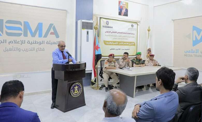 برعاية الأمانة العامة للمجلس الانتقالي ننظم المركز الإعلامي للقوات المسلحة الجنوبية بالهيئة الوطنية للإعلام الجنوبي، الخميس، بقاعة التدريب والتأهيل الإعلامي والسياسي بالعاصمة عدن حلقة نقاشية بمناسبة الذكرى الثامنة لتحرير ساحل حضرموت من تنظيم القاعدة الإرهابي بحضور عضو هيئة رئاسة المجلس الانتقالي الجنوبي يحيى غالب الشعيبي ود. صالح محسن الحاج رئيس هيئة الشؤون الخارجية والمغتربين المساعدة ومختار اليافعي نائب رئيس الهيئة الوطنية للإعلام الجنوبي وعدد من القيادات العسكرية والمدنية الجنوبية.