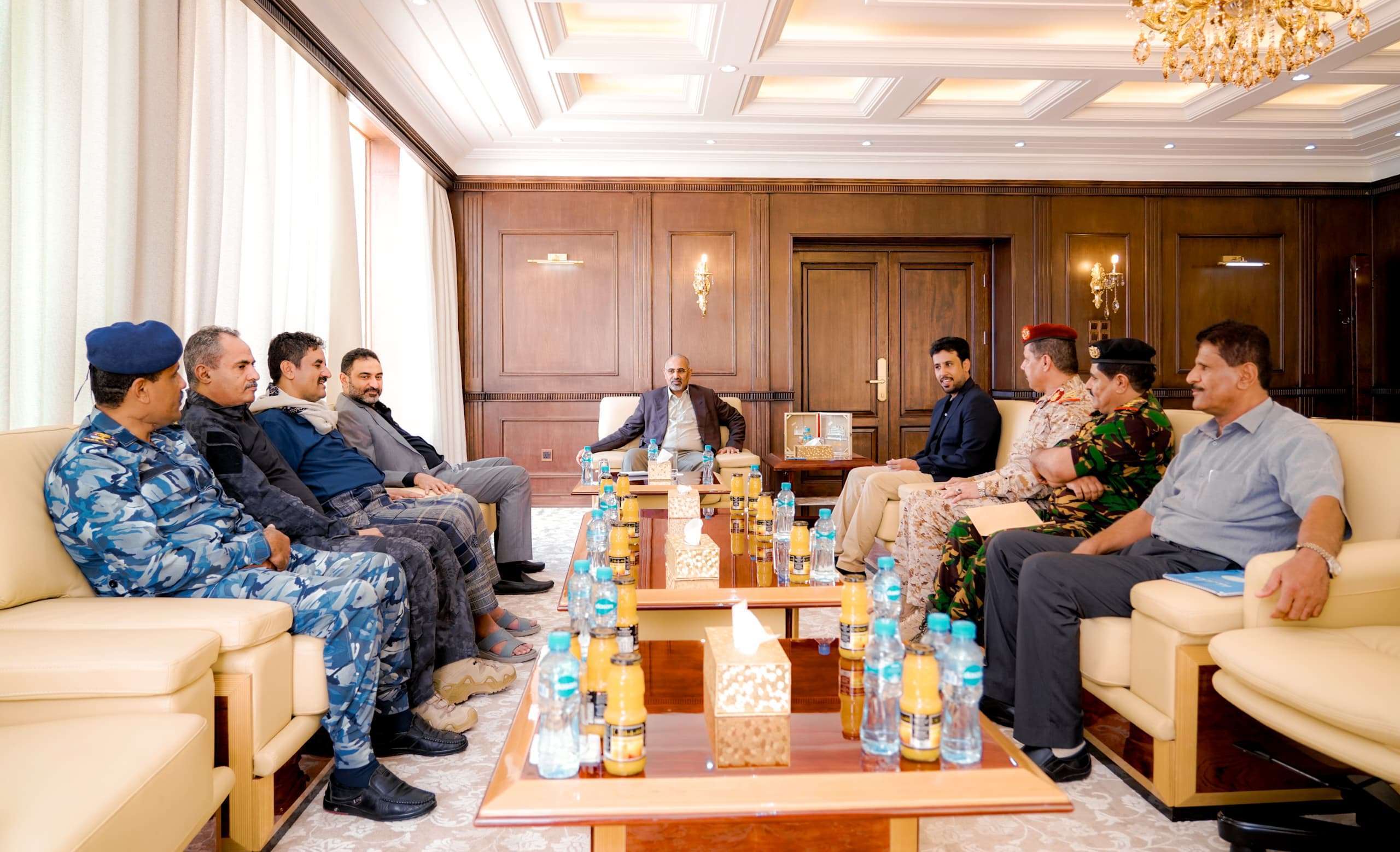 واستمع الرئيس القائد، خلال اللقاء الذي حضره أعضاء هيئة رئاسة المجلس الانتقالي محمد الغيثي رئيس هيئة التشاور والمصالحة المساندة لمجلس القيادة الرئاسي، وعبدالعزيز الجفري، واللواء علي أحمد الجبواني، ووكيل الهيئة العامة للأراضي والمساحة محمد مبارك بن ناجي، إلى شرحٍ وافٍ عن سير العمل الأمني في شبوة، وموقف القوات العسكرية في جبهات المواجهة مع مليشيات الحوثي شمال غرب المحافظة.