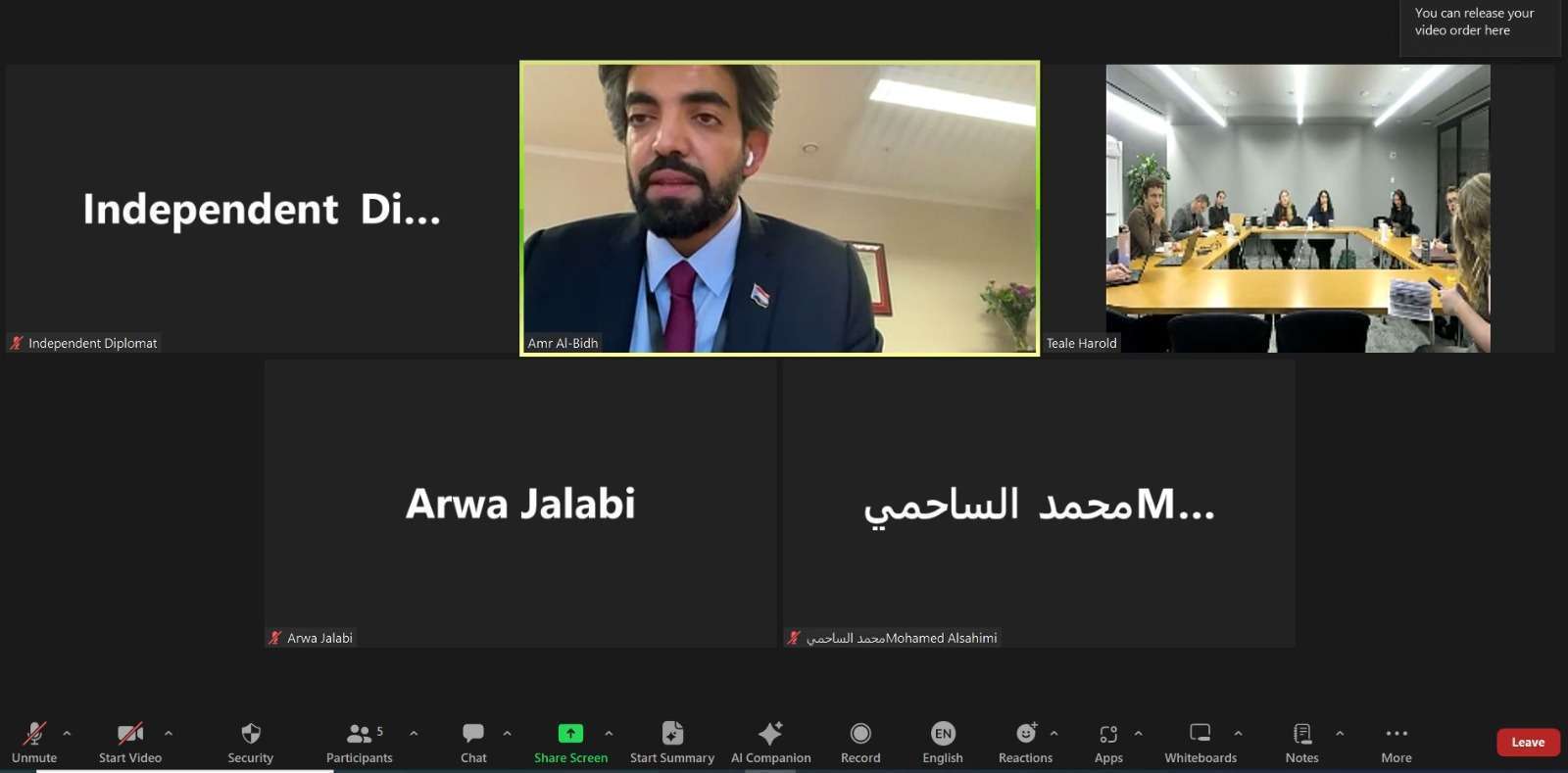 التقى عضو هيئة رئاسة المجلس الانتقالي الجنوبي الممثل الخاص للرئيس الزُبيدي للشؤون الخارجية عمرو البيض، يوم أمس الأول، عبر تقنية الاتصال المرئي، مجموعة من الدول في مجلس الأمن الدولي.