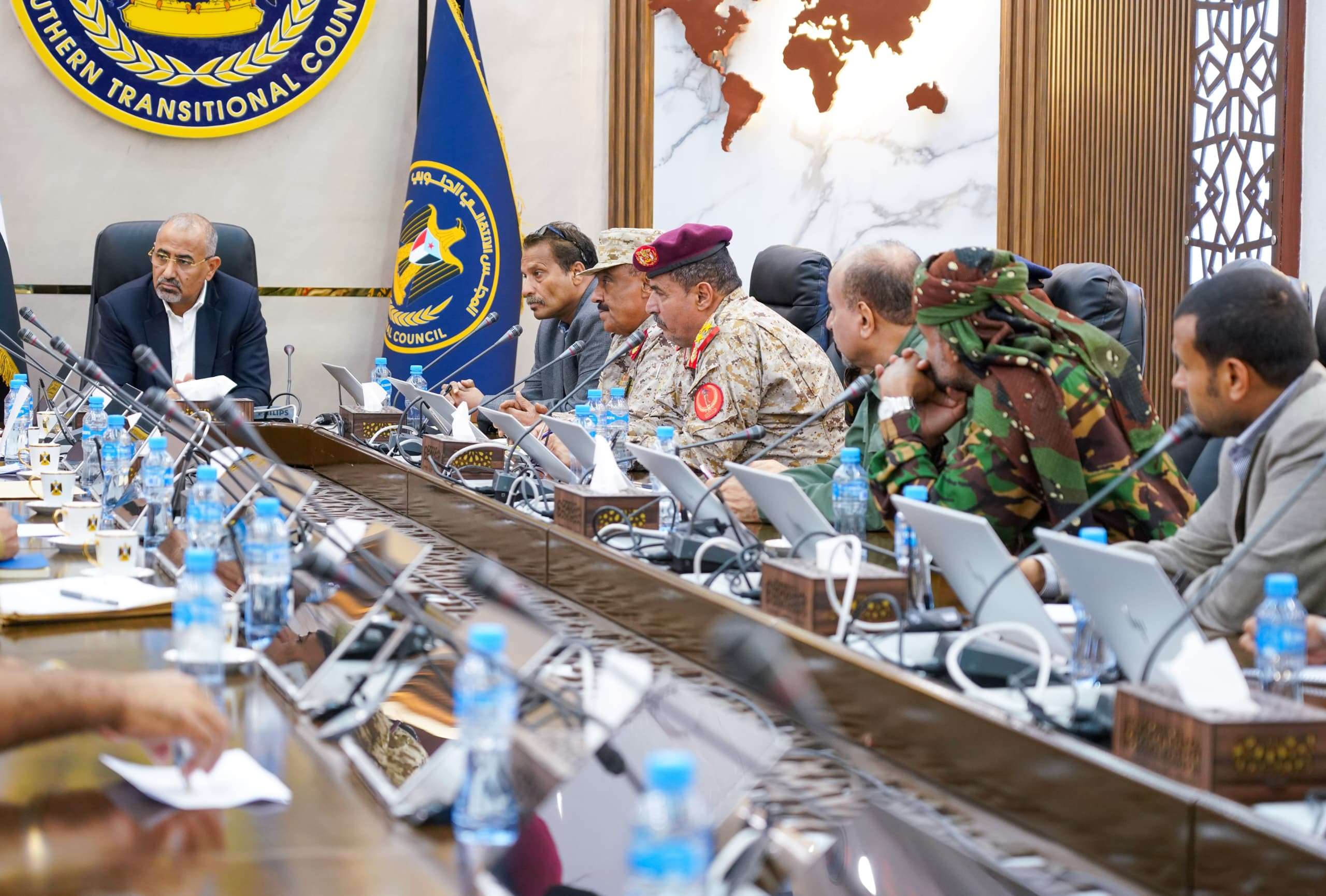كما وقف الاجتماع أمام التهديدات الحوثية المتزايدة في محافظة أبين، وفي هذا الشأن شدد الرئيس الزُبيدي على ضرورة التعامل مع هذه التهديدات بحزم وقوة، ورفع مستوى اليقظة الأمنية والاستعداد الدائم لمواجهة أي محاولات لزعزعة الأمن والاستقرار.
