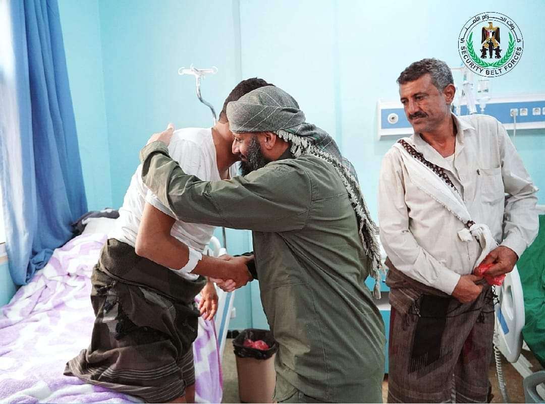 اطمأن العميد محسن عبدالله الوالي، القائد العام لقوات الحزام الأمني، اليوم، على صحة، سمير مهلب، قائد الحزام في قطاع آل باقيناش، ومرافقه محمد علي الصوبي، اللذين يتلقيان العلاج في أحد مستشفيات العاصمة عدن، جراء تعرضهما لتفجير إرهابي.