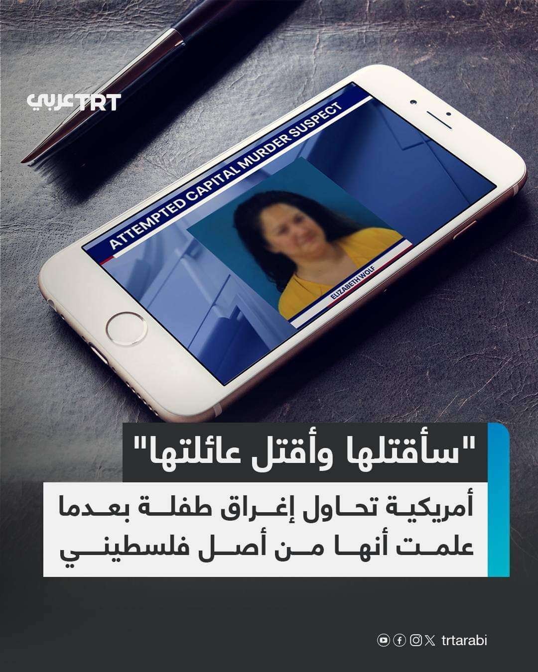 اتُّهمت امرأة أمريكية بمحاولة القتل بعد اعتدائها على طفلة تبلغ من العمر ثلاث سنوات ومحاولتها إغراقها في حمام سباحة بمدينة تكساس، بعد استجواب والدة الطفلة حول أصولها ومعرفتها أنها فلسطينية.