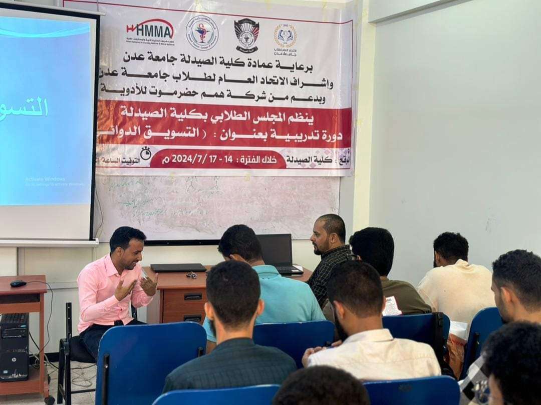 في خطوة لتعزيز مهارات طلاب كلية الصيدلة بجامعة عدن، نظم الاتحاد العام لطلاب الجامعة دورة تدريبية بعنوان "التسويق الدوائي". هذه الدورة التي تستمر لمدة أربعة أيام، تأتي برعاية كريمة من عمادة كلية الصيدلة وبدعم من شركة همم حضرموت للأدوية.