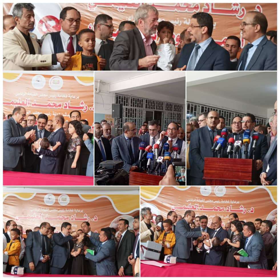 دشن رئيس مجلس الوزراء، الدكتور أحمد عوض بن مبارك، اليوم الاثنين، في العاصمة المؤقتة عدن، الجولة الثانية من حملة التحصين الاحترازية ضد مرض شلل الأطفال والتي تشمل 12 محافظة.