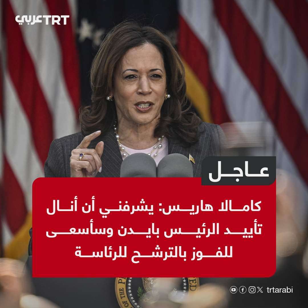 قالت نائبة الرئيس الأميركي كامالا هاريس، إنه يشرفها أن تنال تأييد الرئيس جو بايدن الذي دعا الديمقراطيين لترشيحها لانتخابات الرئاسة خلفاً له، مشيرة إلى أنها ستسعى للفوز بالترشح للرئاسة.