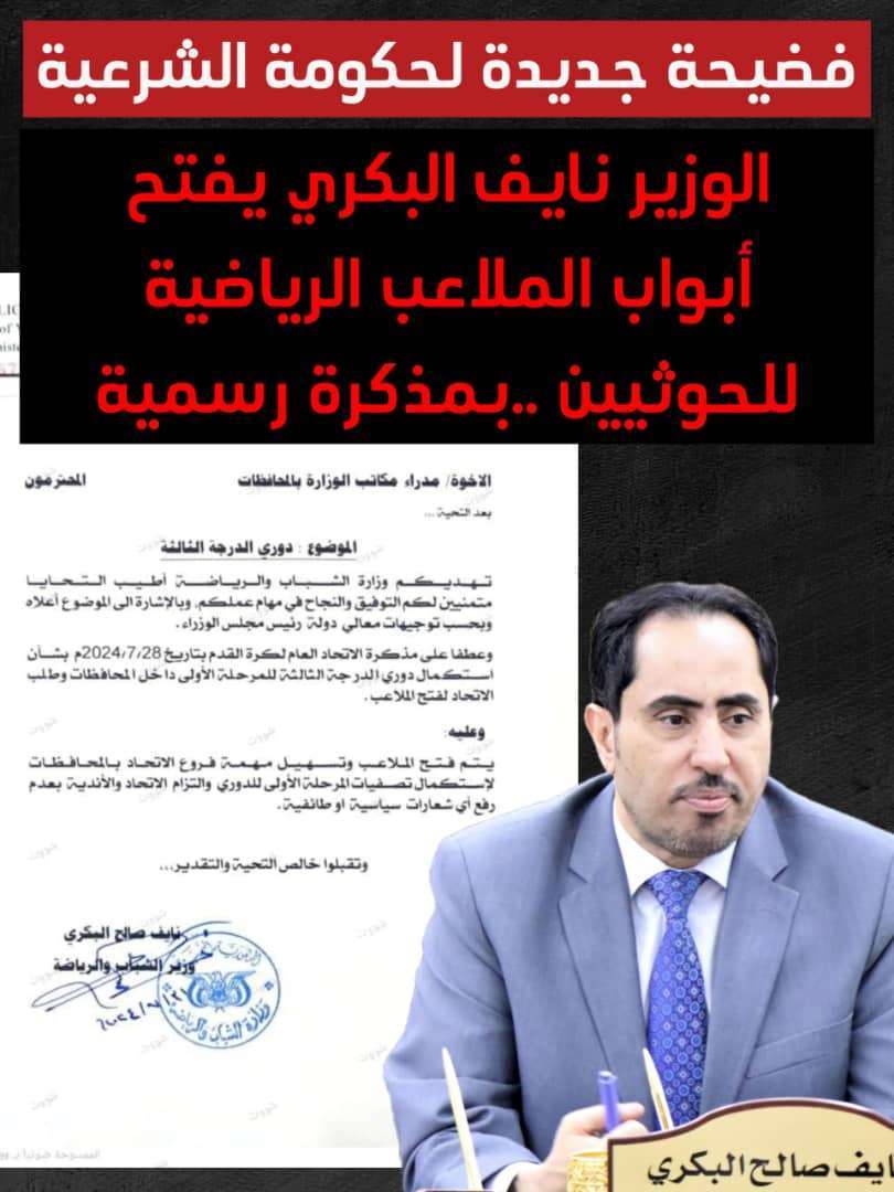 جاءت هذه التعليمات عبر رسالة رسمية من الوزير البكري، الذي طلب فيها من الجهات المختصة تسهيل إقامة الأنشطة الرياضية تحت مظلة الاتحاد العام لكرة القدم، رغم أن تلك الأنشطة تجري بتمويل ودعم من المليشيات الحوثية.