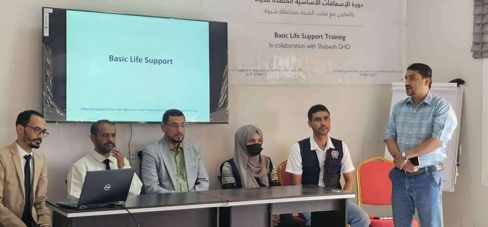 دشّن مكتب الصحة العامة والسكان بمحافظة شبوة" دورة تدريبية متخصصة في الإسعافات الأولية لإنقاذ الحياة، وبتمويل من المنظمة الدولية للهجرة" وذلك بحضور وكيل المحافظة الدكتور عبدالقوي بن علي لمروق" ومدير عام مكتب الصحة العامة والسكان الدكتور علي ناصر الذيب" والدكتورة أنجيلا الوائلي مديرة مشاريع القطاع الصحي بالمنظمة الدولية للهجرة" وعدد من القيادات الصحية بالمحافظة.