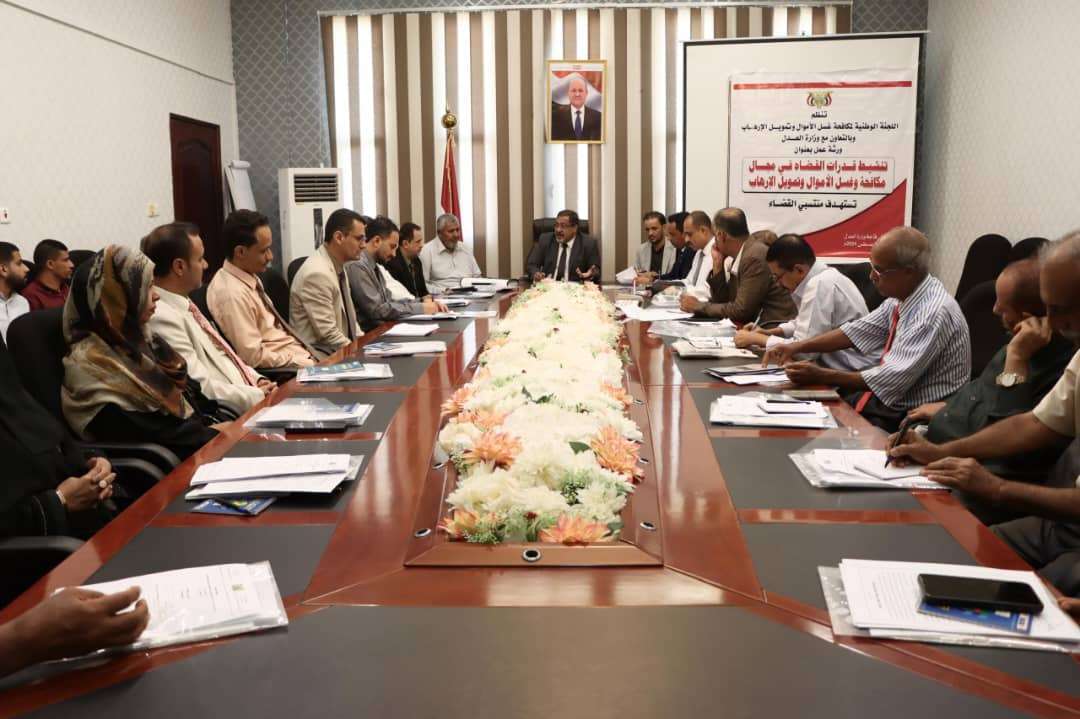 نظمت اللجنة الوطنية لمكافحة غسل الأموال وتمويل الإرهاب ، ورشة عمل بعنوان (تنشيط قدرات القضاة في مجال غسل الأموال وتمويل الإرهاب) بديوان وزارة العدل بالعاصمة عدن.