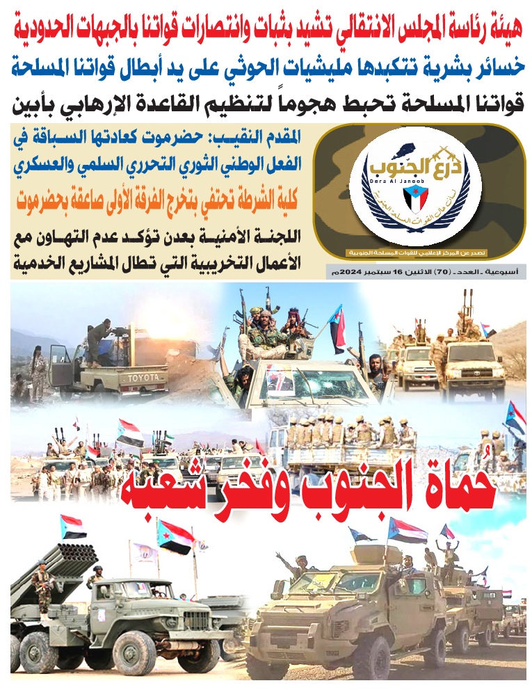لتصفح العدد 70 من صحيفة درع الجنوب عبر الرابط التالي: