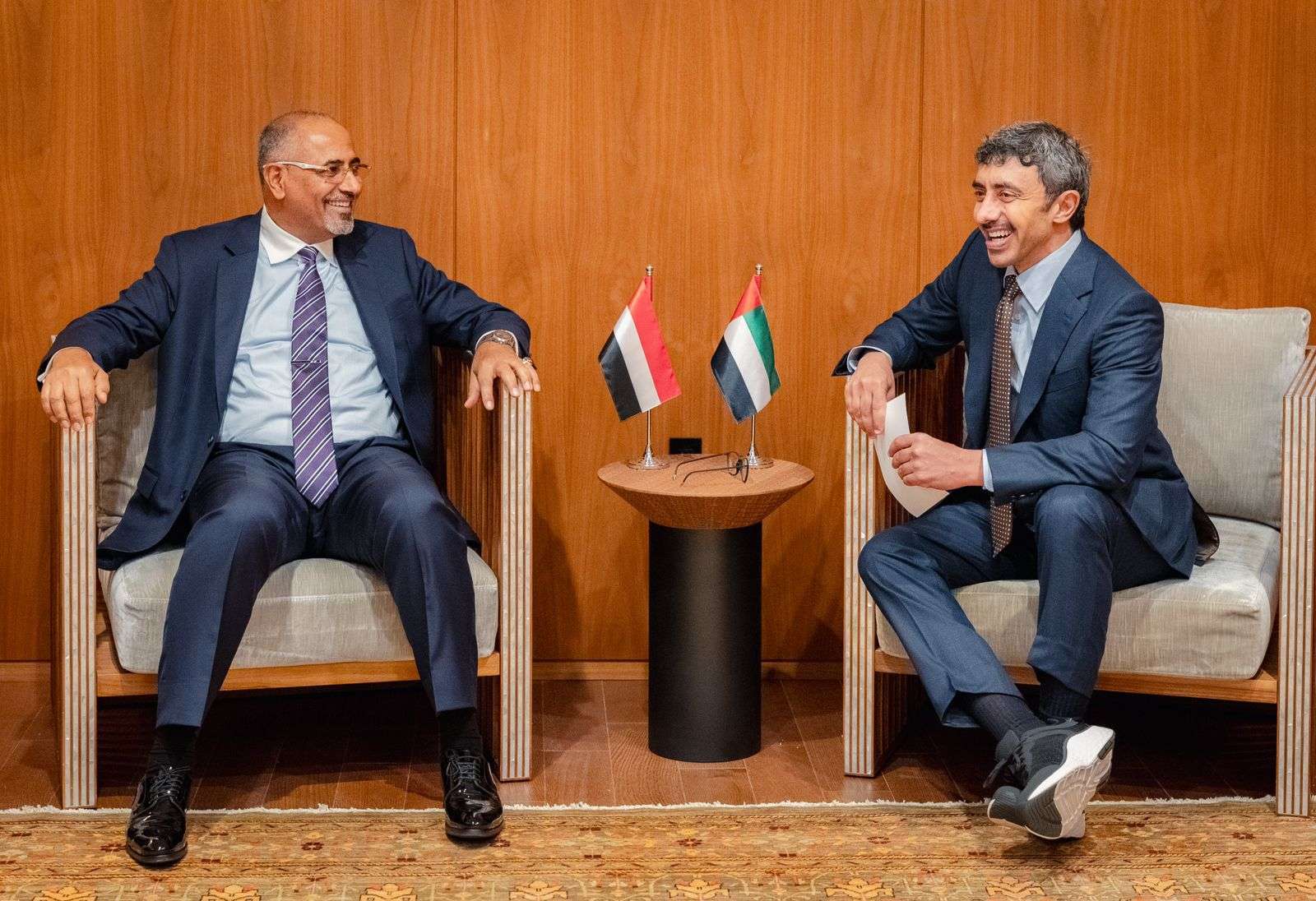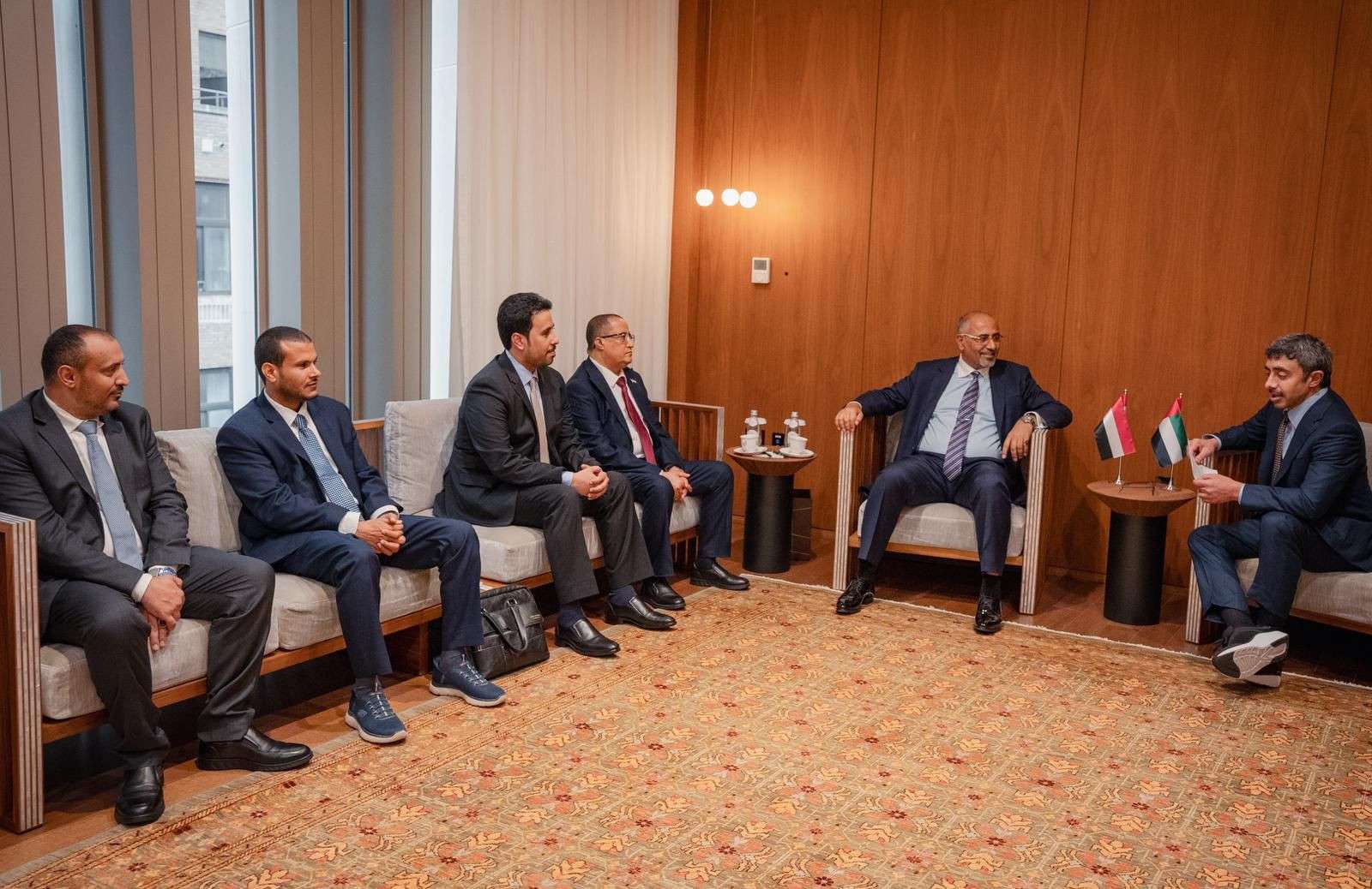 التقى الرئيس القائد عيدروس قاسم الزُبيدي، رئيس المجلس الانتقالي الجنوبي، نائب رئيس مجلس القيادة الرئاسي، وزير خارجية دولة الإمارات العربية المتحدة الشقيقة سمو الشيخ عبدالله بن زايد آل نهيان مساء اليوم في مقر بعثة دولة الإمارات في الأمم المتحدة بمدينة نيويورك.