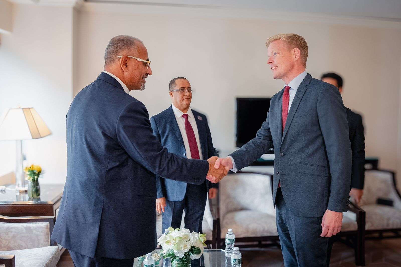 حضر اللقاء، محمد الغيثي عضو هيئة رئاسة المجلس الانتقالي الجنوبي، رئيس هيئة التشاور والمصالحة المساعدة لمجلس القيادة الرئاسي، والدكتور ناصر الخُبجي، رئيس الهيئة السياسية المساعدة لهيئة رئاسة المجلس الانتقالي الجنوبي، رئيس وحدة شؤون المفاوضات، وعمرو البيض عضو هيئة رئاسة المجلس الانتقالي، ممثل الرئيس للشؤون الخارجية، وأنيس الشرفي نائب رئيس هيئة الشؤون الخارجية والمغتربين في المجلس الانتقالي الجنوبي.
