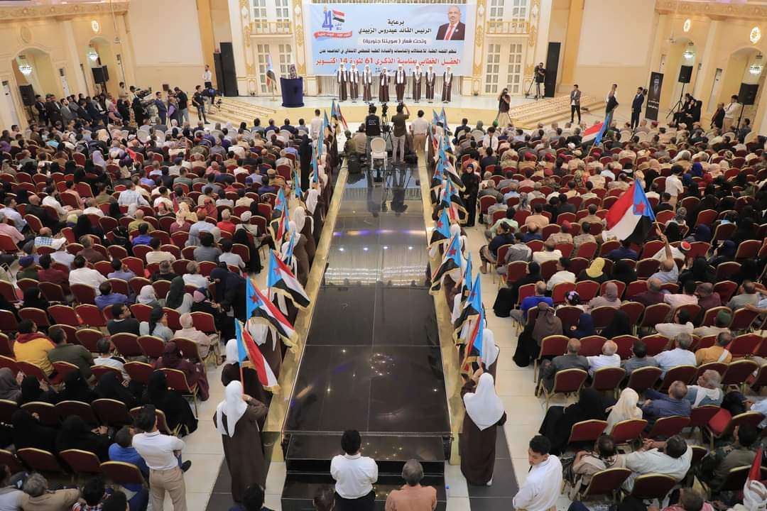 أقام المجلس الانتقالي الجنوبي، اليوم الثلاثاء بالعاصمة عدن، حفلاً فنياً وخطابياً بمناسبة الذكرى الـ61 لثورة 14 أكتوبر المجيدة، تحت شعار "هويتنا جنوبية" نظمته اللجنة العليا للمناسبات الوطنية بالتعاون مع القيادة المحلية للمجلس الانتقالي بالعاصمة عدن، برعاية الرئيس القائد عيدروس الرُبيدي، رئيس المجلس الانتقالي الجنوبي.