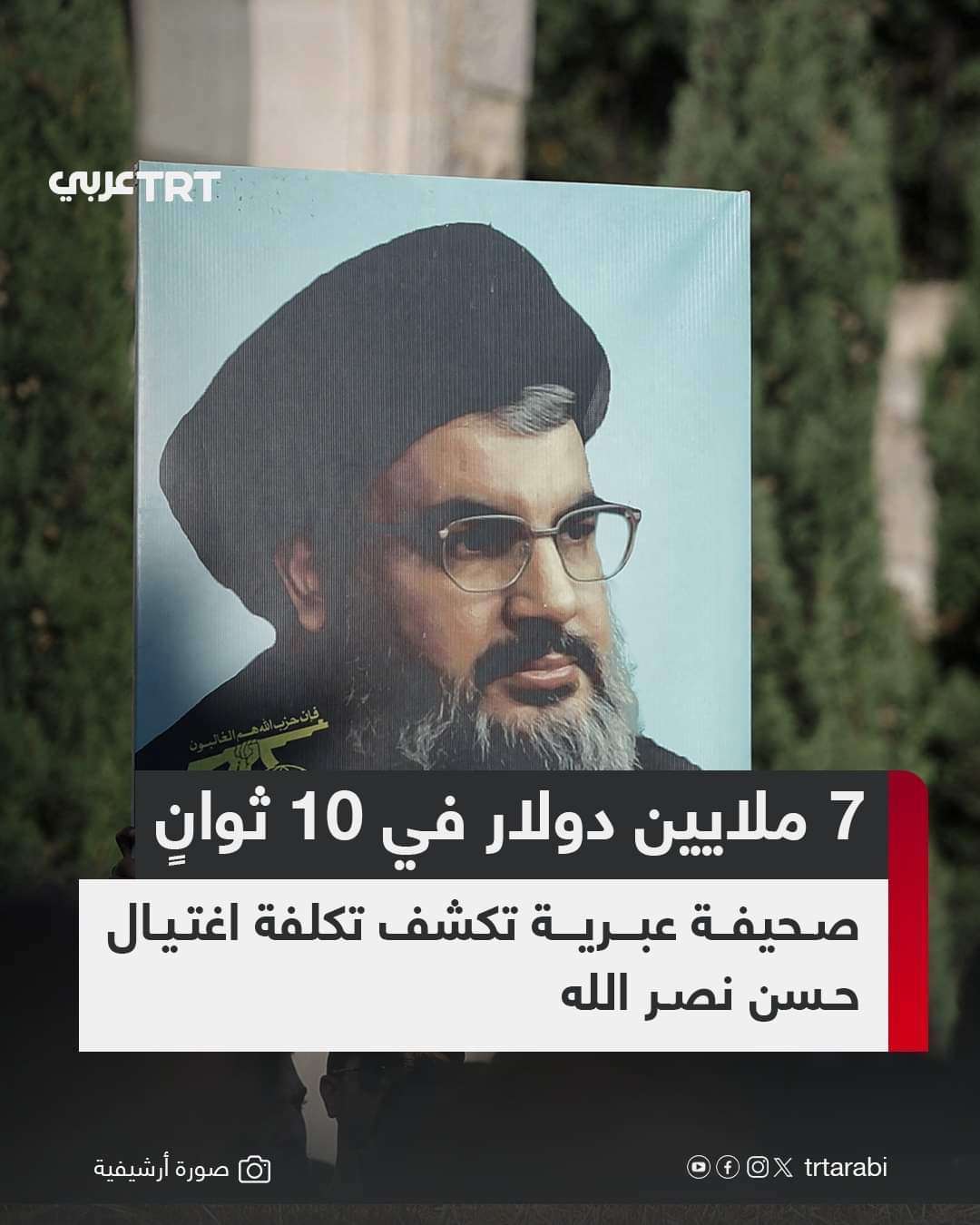 ذكرت صحيفة يديعوت أحرونوت العبرية أن القنابل التي استخدمها سلاح الجو الإسرائيلي لاغتيال الأمين العام لحزب الله اللبناني حسن نصر الله كلفت ميزانية إسرائيل نحو 25 مليون شيكل (7 ملايين دولار)