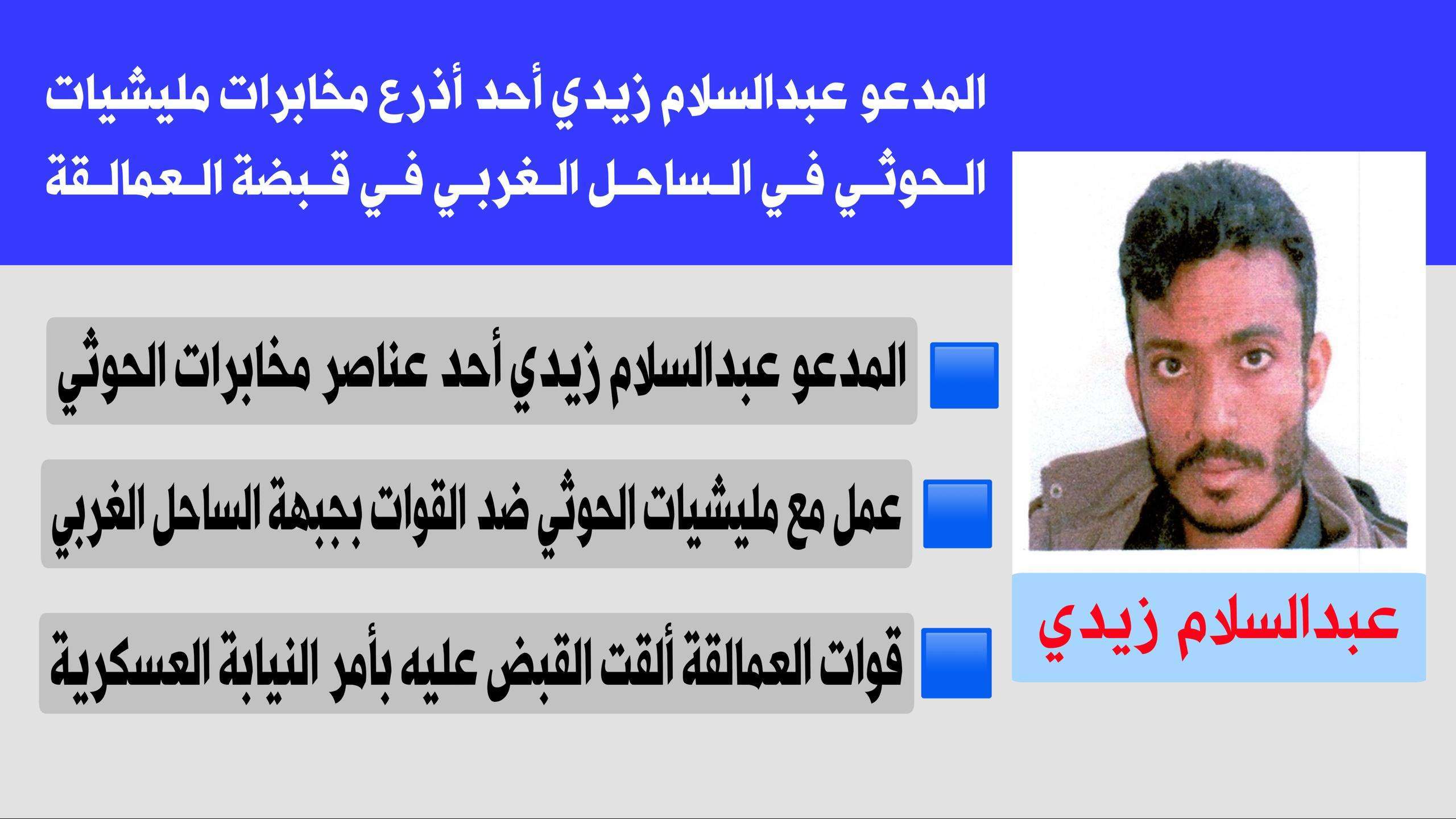 وقال المصدر: إن قوات العمالقة الجنوبية، بناءً على أمر قبض قهري صادر من النيابة العسكرية، ألقت القبض على المدعو: عبدالسلام زيدي، المتهم بالتخابر والعمل مع مليشيات الحوثي الإرهابية في المناطق المحررة، بالساحل الغربي، وضلوعه في تنفيذ عمليات خطيرة، تستهدف القوات في الجبهة.