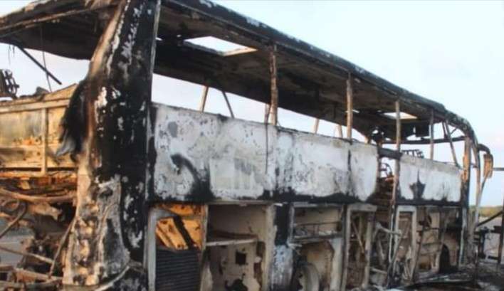 اشتعل الباص بعد تجاوزه نقطة دوفس بلحظات في مفرق الشيخ عبدالله أثناء مروره في الخط الدولي جنوب مدينة زنجبار
