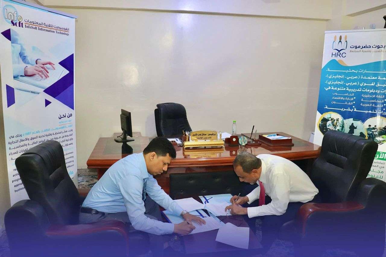 انفوسوفت توقع مذكرة تعاون مع جامعة الأحقاف بالمكلا
