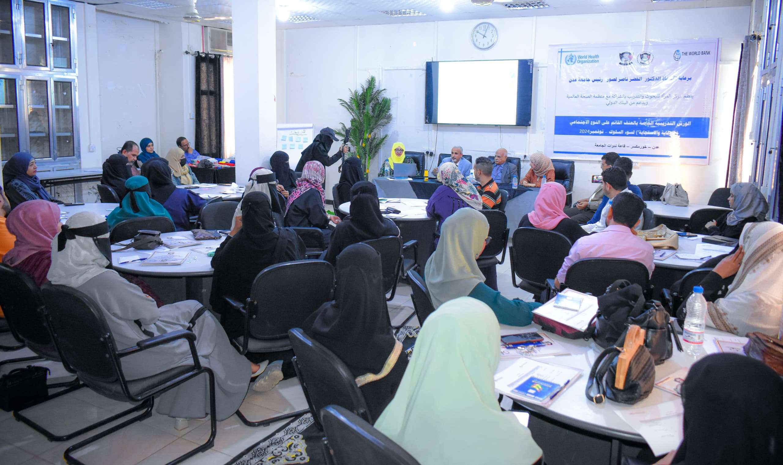 برعاية الأستاذ الدكتور/الخضر ناصر لصور رئيس جامعة عدن، نظم مركز المرأة للبحوث والتدريب بجامعة عدن بالشراكة مع منظمة الصحة العالمية وبدعم من البنك الدولي يوم الأحد 3 نوفمبر 2024م الورش التدريبية التنشيطية الخاصة بالعنف القائم على النوع الاجتماعي تحت شعار (الوقاية والاستجابة) والتي تستمر على مدى خمسة أيام، باستهداف 30 مشاركاً من خريجي المركز في كل يوم.