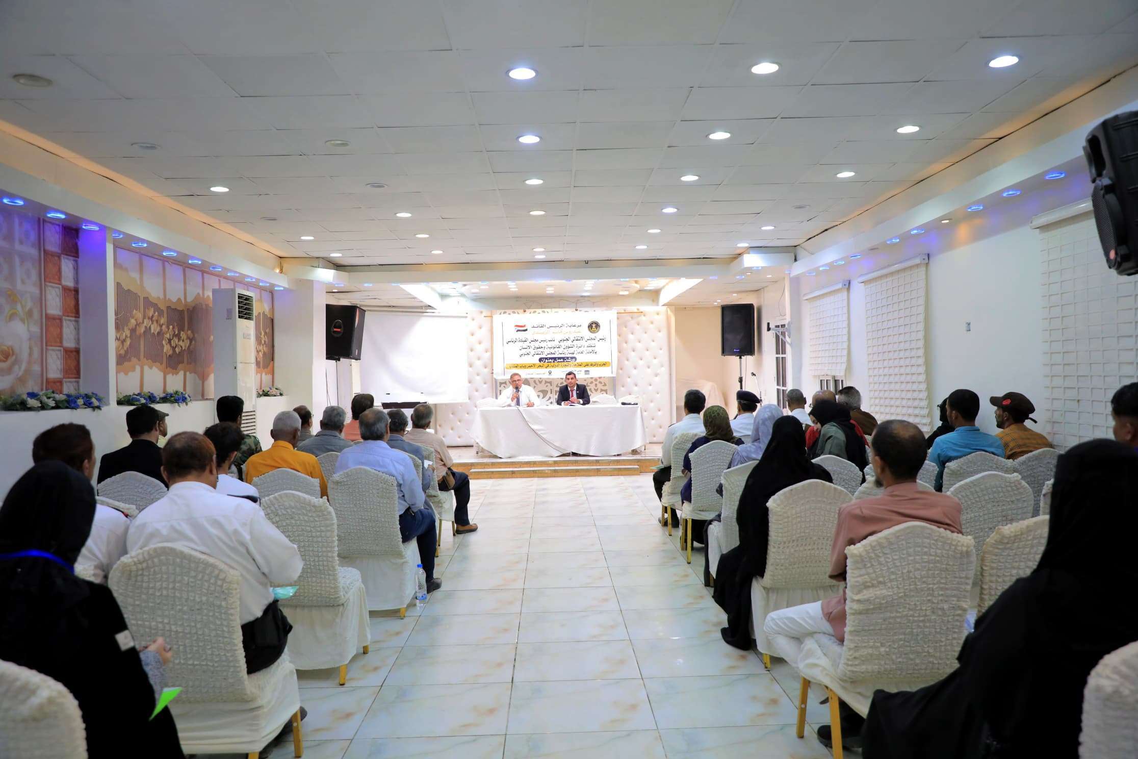 دشنت دائرة الشؤون القانونية وحقوق الإنسان بالأمانة العامة لهيئة رئاسة المجلس الانتقالي الجنوبي، اليوم الأربعاء، ورشة عمل بعنوان "الحرب واثرها على الملاحة والتجارة الدولية في البحر الأحمر وباب المندب"، برعاية الرئيس القائد عيدروس قاسم الزبيدي رئيس المجلس الانتقالي الجنوبي.