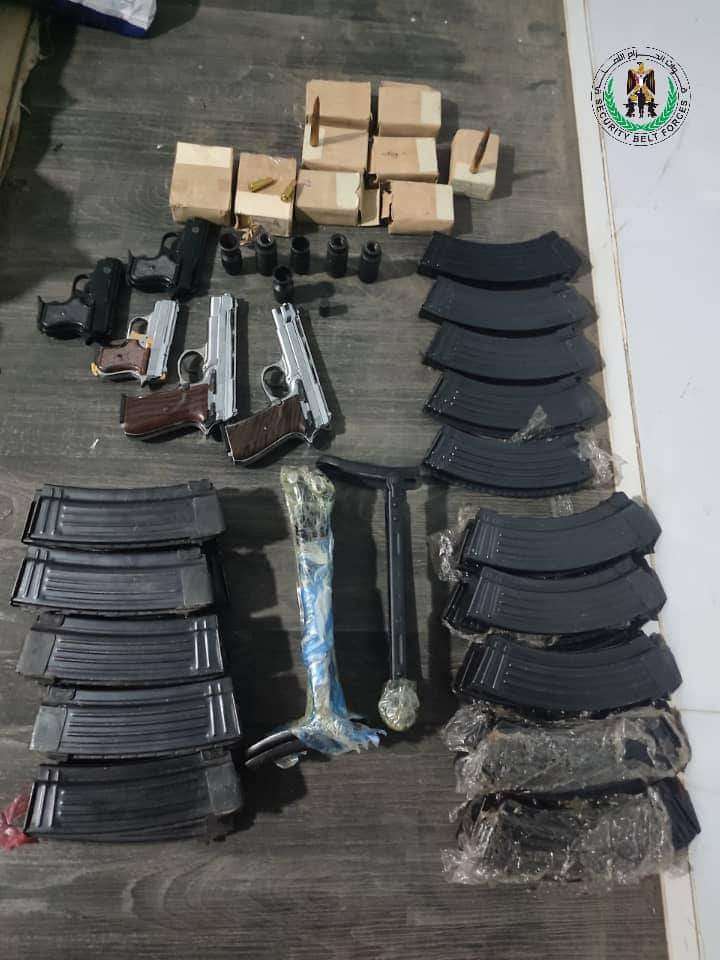 "مسدسات تركية نوع كلك مختلفة الاحجام،وملابس عسكرية،اضافة الى ذخيرة مسدس،وقطع غيار سلاح آلي،ومخازن سلاح ارسلان+كلاشنكوف"