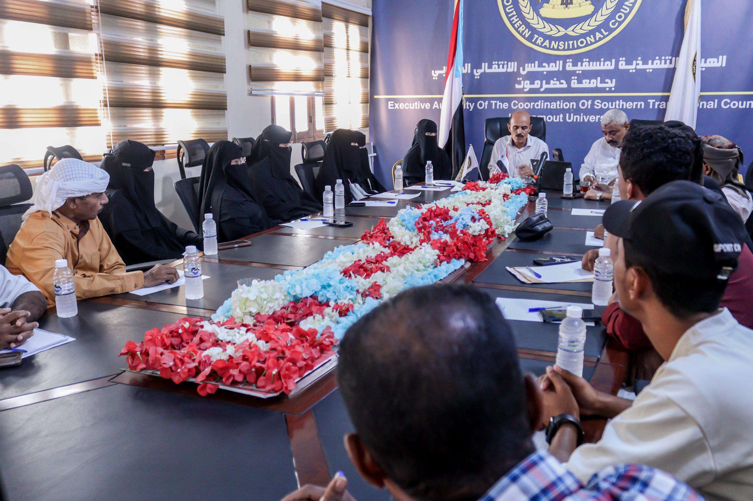 نظم فريق العمل التنظيمي بالهيئة التنفيذية لمنسقية المجلس الانتقالي الجنوبي بجامعة حضرموت، يوم السبت، لقاءً تشاورياً لمسؤولي فرق العمل التنظيمي بمنسقيات المجلس لكليات الجامعة.