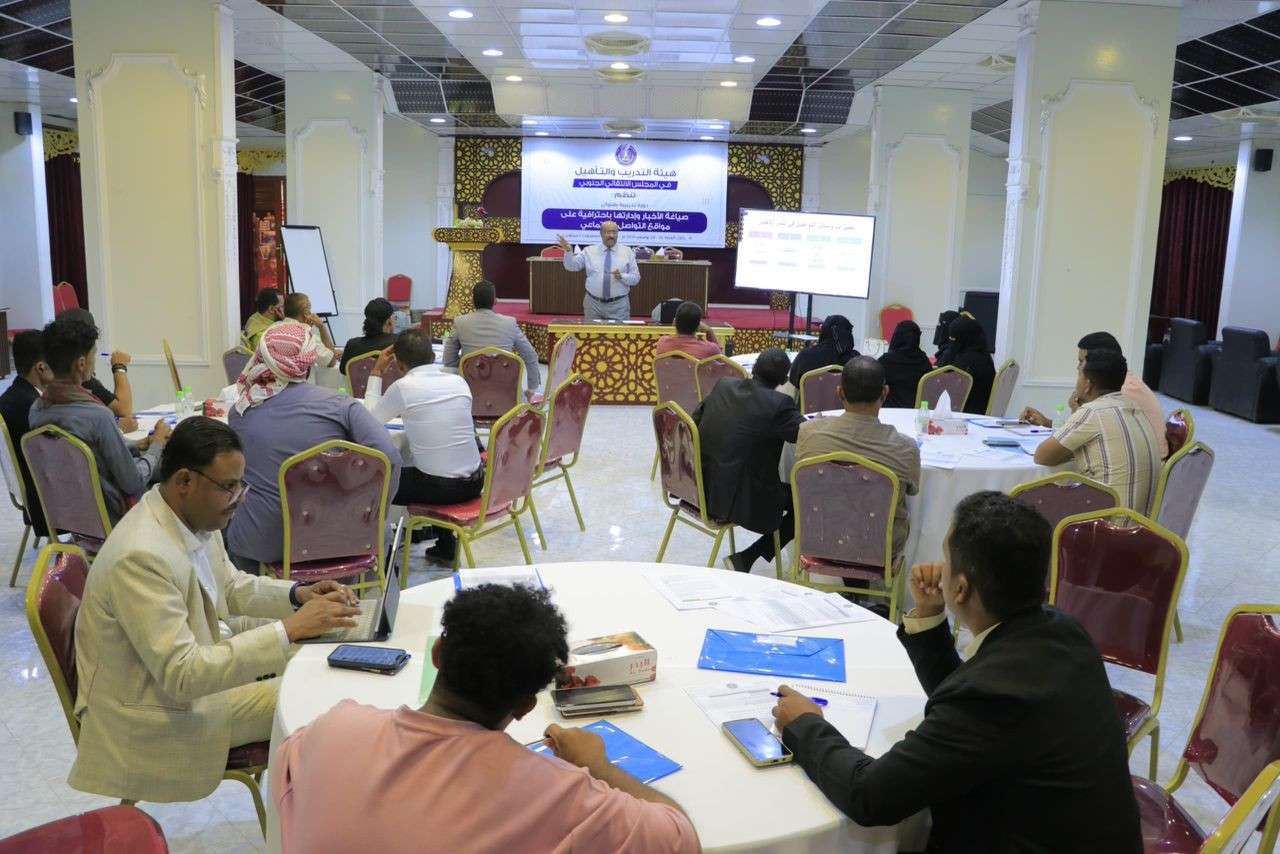 دشنت هيئة التدريب والتأهيل المساعدة لهيئة رئاسة المجلس الانتقالي الجنوبي، بالتنسيق مع إدارة الإعلام والثقافة بالهيئة التنفيذية المساعدة للمجلس الانتقالي لشؤون مديريات وادي وصحراء حضرموت، يوم الأحد، بسيئون، دورة تدريبية بعنوان "صياغة الأخبار وإدارتها باحترافية على مواقع التواصل الاجتماعي".