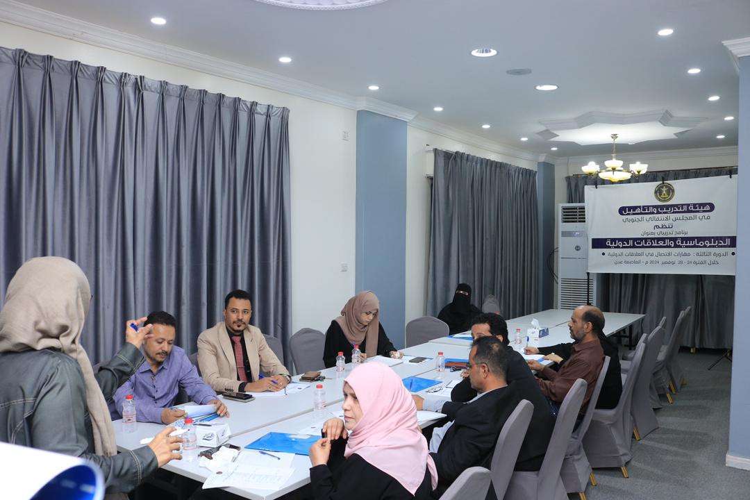 نظّمت هيئة التدريب والتأهيل بالمجلس الانتقالي الجنوبي، يوم الأحد، في العاصمة عدن، الدورة التدريبية الثالثة بعنوان "مهارة الاتصال في العلاقات الدولية"، وذلك ضمن برنامج الدبلوماسية والعلاقات الدولية.