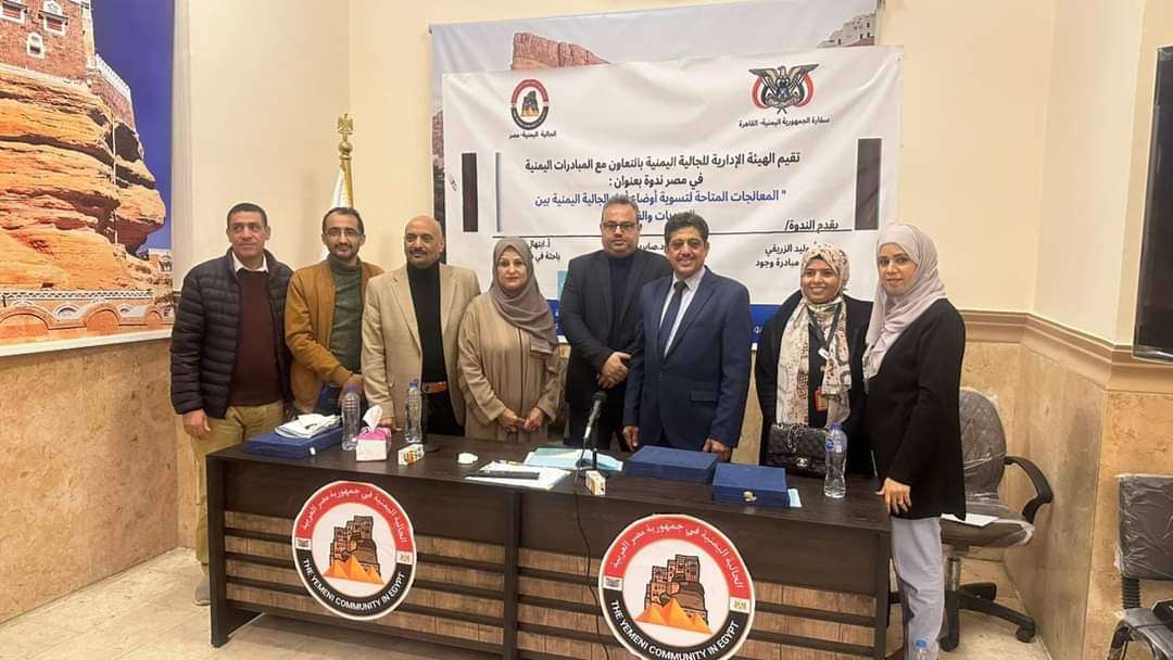 كرمت الهيئة الإدارية في الجالية اليمنية في مصر ممثلة بأمين عام الجالية د. محمد الحميري، رئيس مبادرة ديوان اليمن د. صابرين صلاح، رئيس مبادرة وجود أ. وليد الزريقي، والباحثة المتخصصة في شؤون اللاجئين أ. ابتهال الصالحي، عرفانا بتأسيسهم وتبنيهم المبادرات الإنسانية والمجتمعية خدمة لأبناء الجالية خلال الفترة الماضية. وجاء التكريم على هامش ندوة نظمها الجالية في مقرها في نادي الشباب اليمني في القاهرة، بعنوان المعالجات المتاحة لتسوية أوضاع أبناء الجالية اليمنية في مصر ـ التحديات والفرص، بحضور جمع من أبناء الجالية.