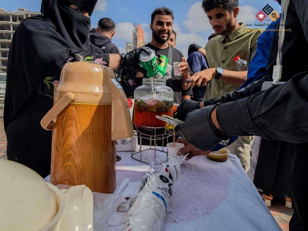 في إطار روح التضامن والمساهمة المجتمعية، نظم طلاب الجامعة الألمانية الدولية - عدن فعالية خيرية في الحرم الجامعي، تم خلالها عرض وجبات ومشروبات متنوعة يعاد بيعها لصالح صندوق الفئات المحتاجة، بالإضافة إلى بيع كتب ثقافية وعلمية أيضاً.
